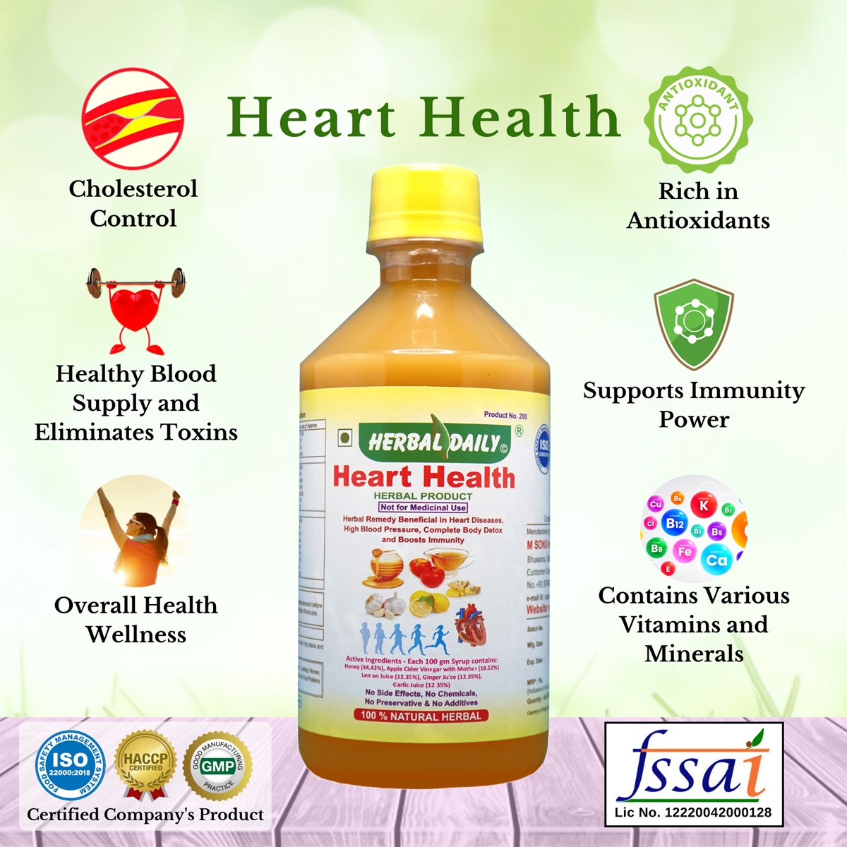 Take 3 teaspoons (15 ml) of Heart Health, mixed in 100 ml of water, every morning on an empty stomach. Avoid consuming any food or drink for 30 minutes after taking it (High-Blood-Pressure-Early-Symptoms, Cardiovascular-And-Heart-Disease).